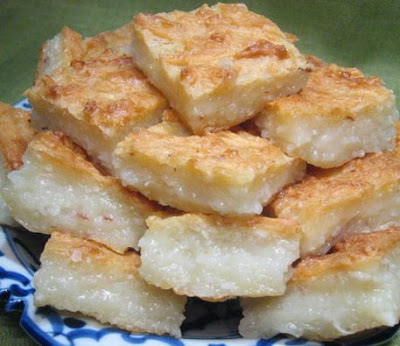 This Coconut Cake Thai called "KHANOM BA - BIN" This easy, low-fat cake recipe has the texture of angel food with the flavor of coconut. Light and moist, this coconut cake is delicious on its own. This coconut cake is great to serve simply as an everyday treat. It's the easy breazy days of summer - any time of year!
